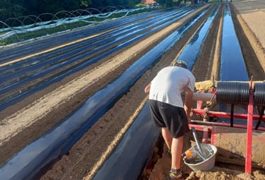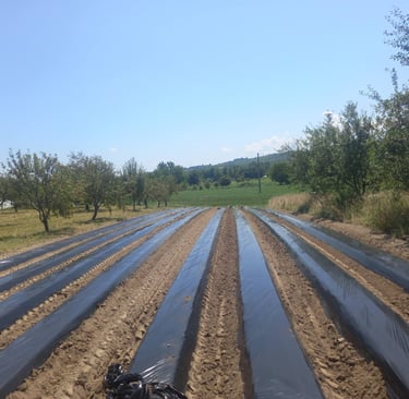Priprema parcela uključuje čišćenje, oranje, postavljanje folije za sadnice i pripremu tla za sadnju.
